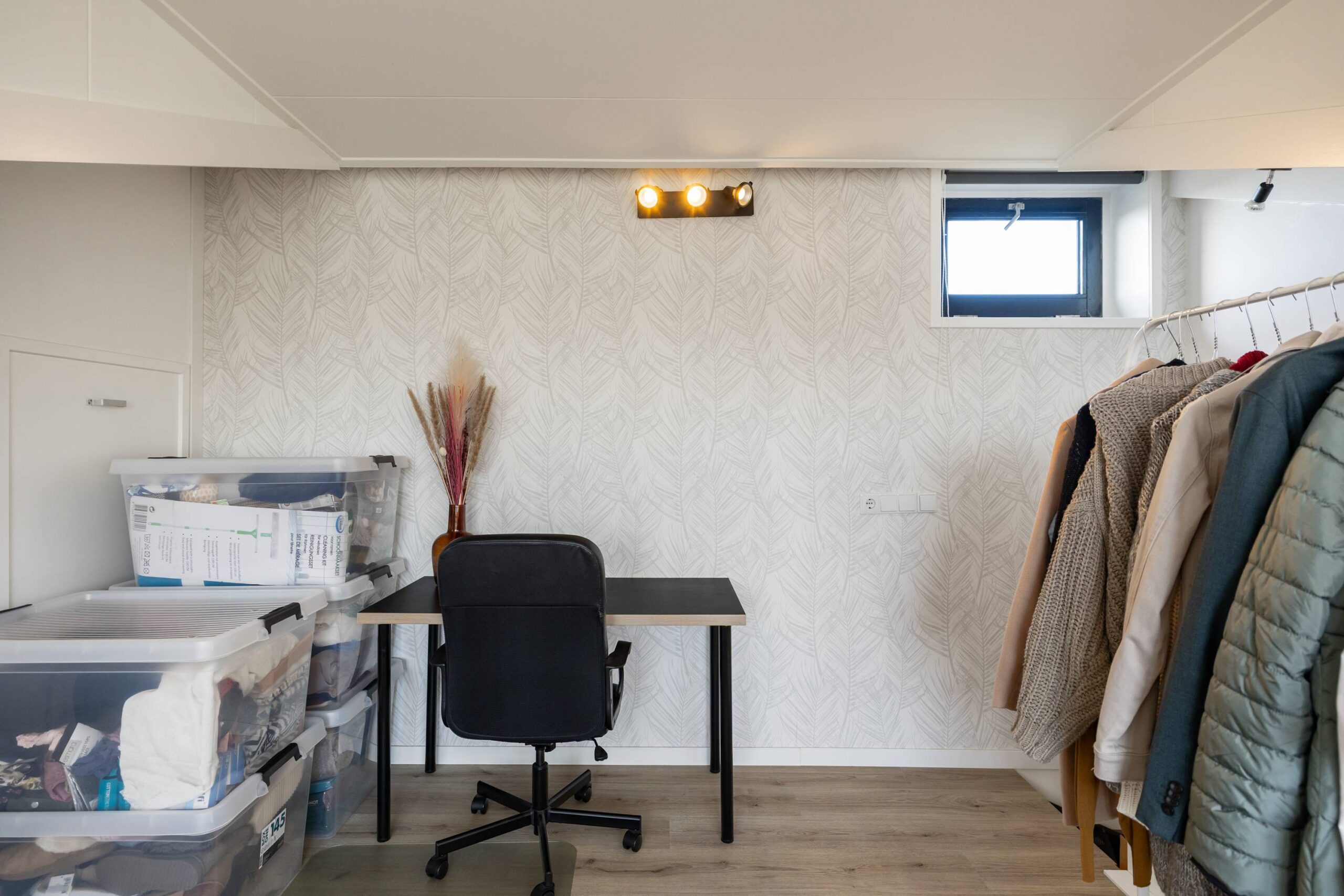 De zolder is bereikbaar via een vaste trap. Hier is in 2023 een dakkapel geplaatst, wat de ruimte aanzienlijk heeft vergroot. Dit is een perfecte plek voor een extra slaapkamer of hobbyruimte. De cv-ketel, omvormer voor de zonnepanelen en de WTW-installatie zijn hier netjes weggewerkt.