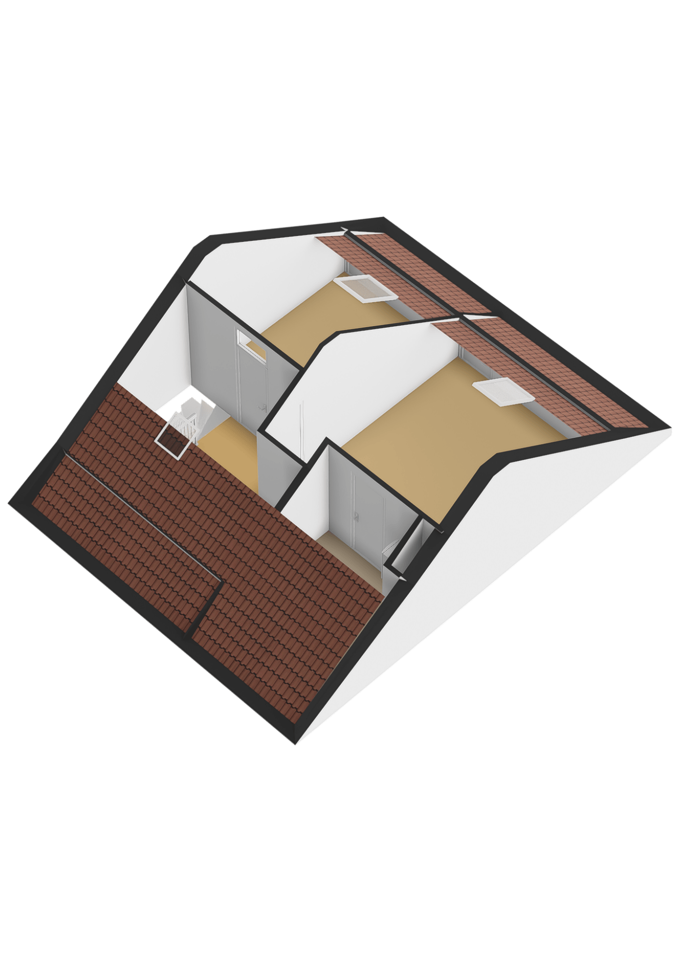 2e verdieping: Via vaste trap bereikbaar, overloop met Velux dakraam, 2 slaapkamers beiden voorzien van Velux dakramen, stookruimte met opstelling CV-ketel (2006).