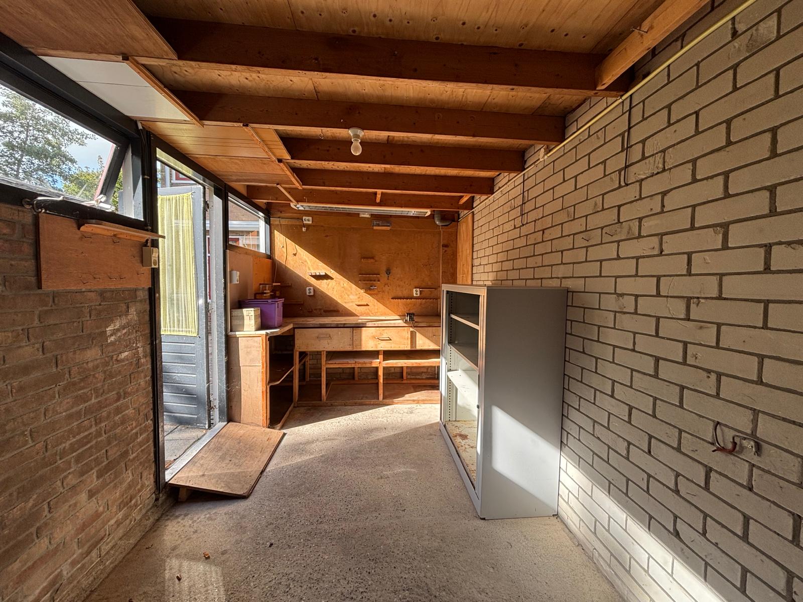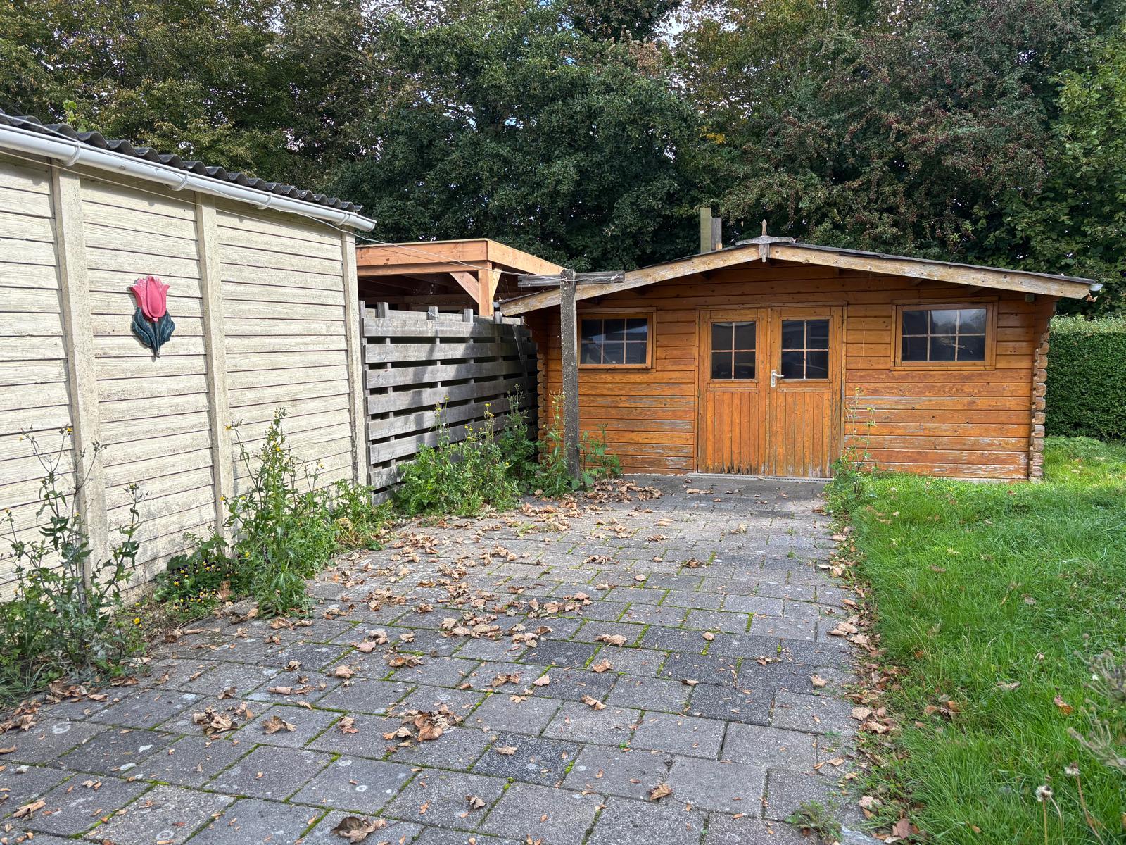 Berging / schuur: Aangebouwde stenen berging, Vrijstaande houten berging