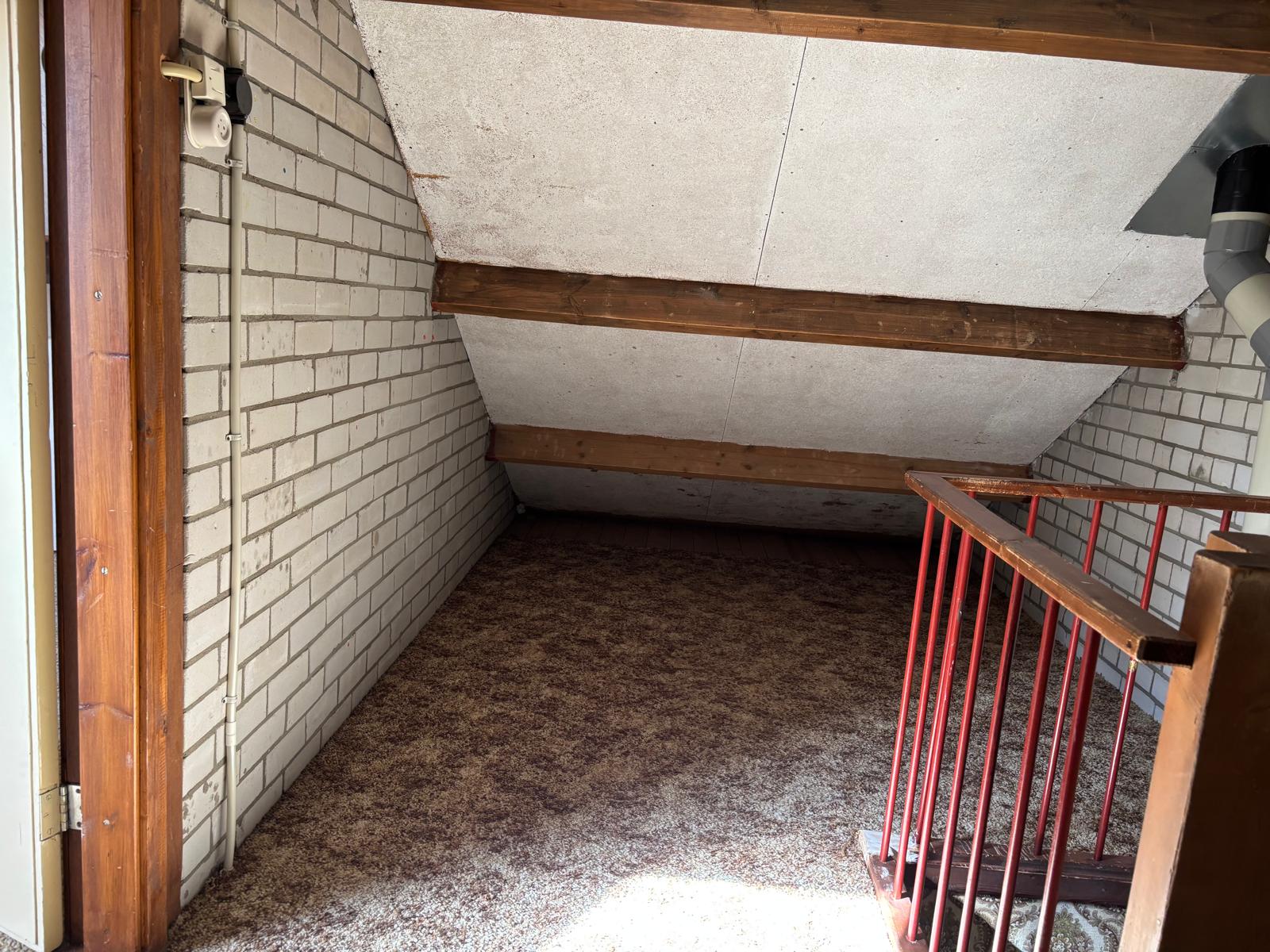 Vaste trap naar zolderverdieping met dakraam en 5e slaapkamer. opstelling omvormer zonnepanelen.