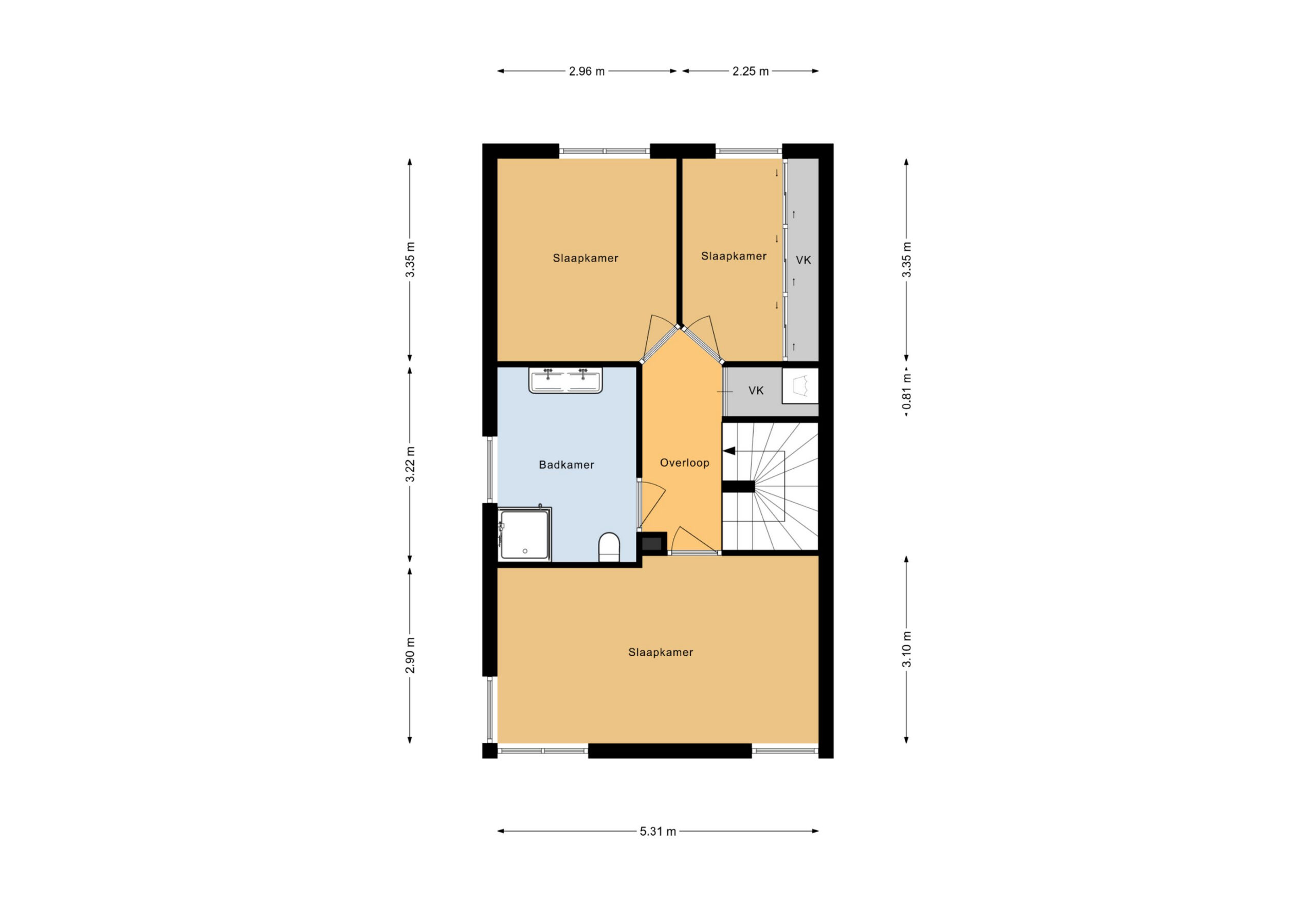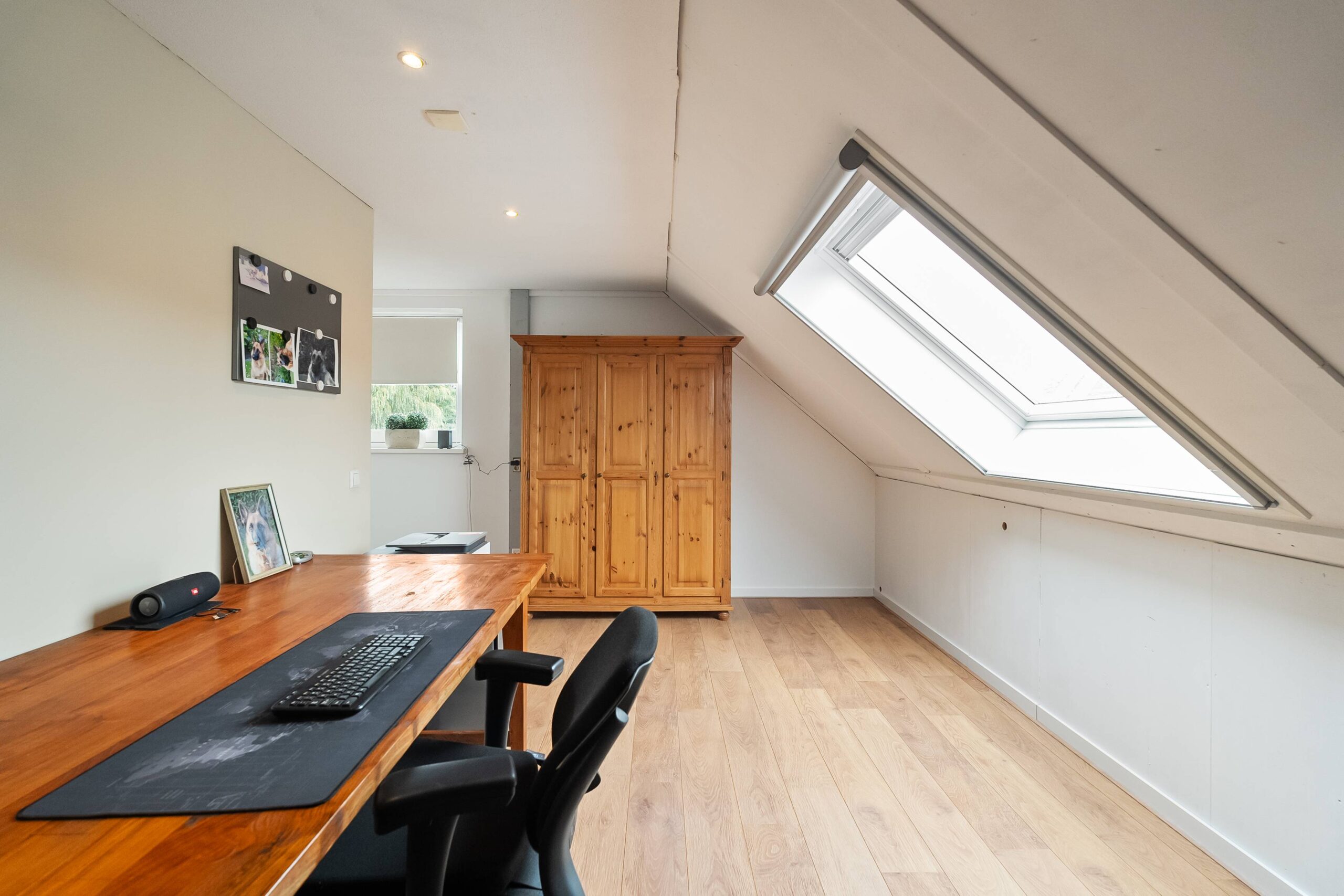Op de eerste verdieping vindt u drie ruime slaapkamers en een moderne badkamer. De badkamer is uitgerust met een douchecabine, een vrijdragend toilet en een fraai wastafelmeubel met een dubbele wastafel. De zolder, bereikbaar via een vaste trap, biedt een vierde slaapkamer, perfect als logeerkamer, kantoor of tienerkamer. Vanuit hier is er tevens toegang tot een ruime vliering, ideaal voor extra bergruimte.