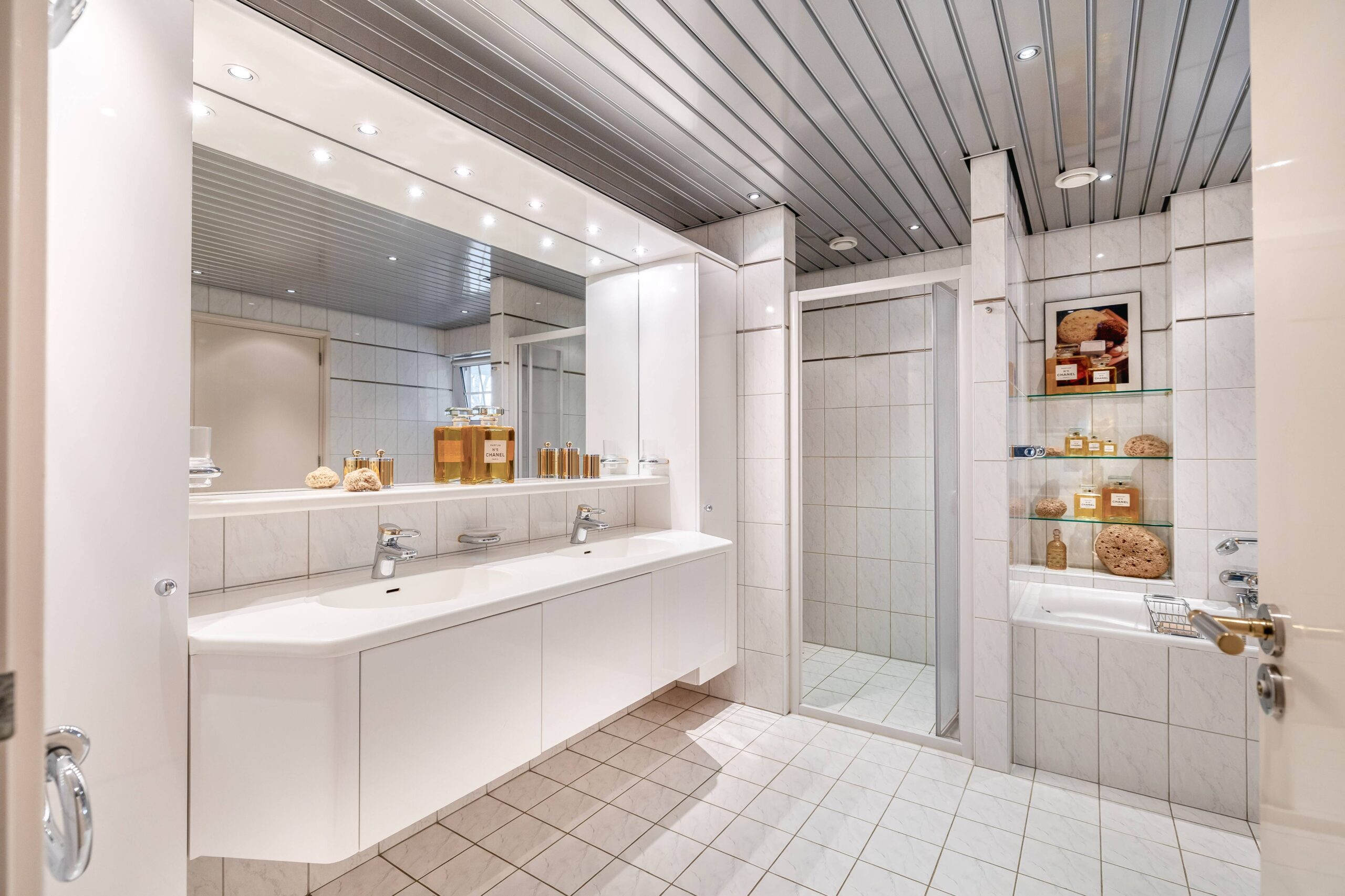 Op de eerste verdieping bevinden zich nog eens twee ruime slaapkamers en een tweede badkamer met douche, toilet en wastafel.