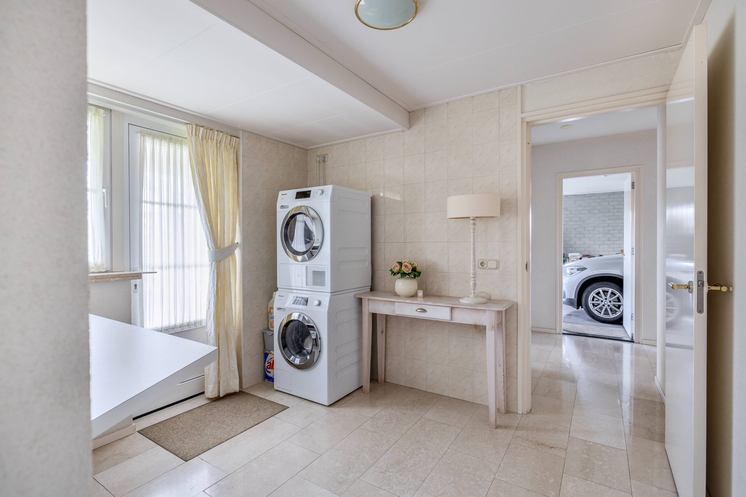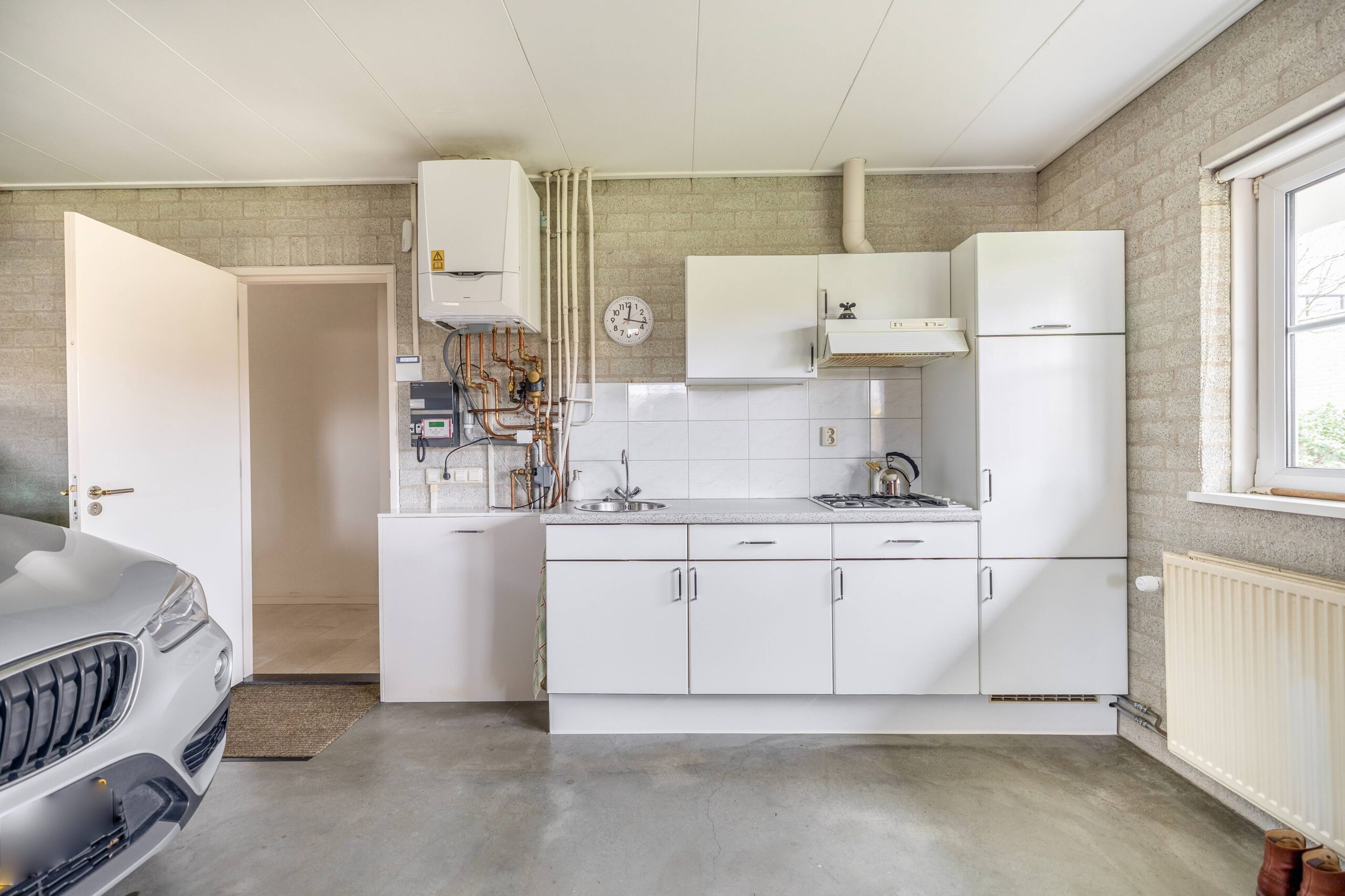 De woning beschikt over een grote garage met dubbele deuren en een vliering, een keukenblokopstelling en een cv-ketelopstelling. Ideaal voor bijvoorbeeld hobby’s, opslag of het stallen van uw auto(s).