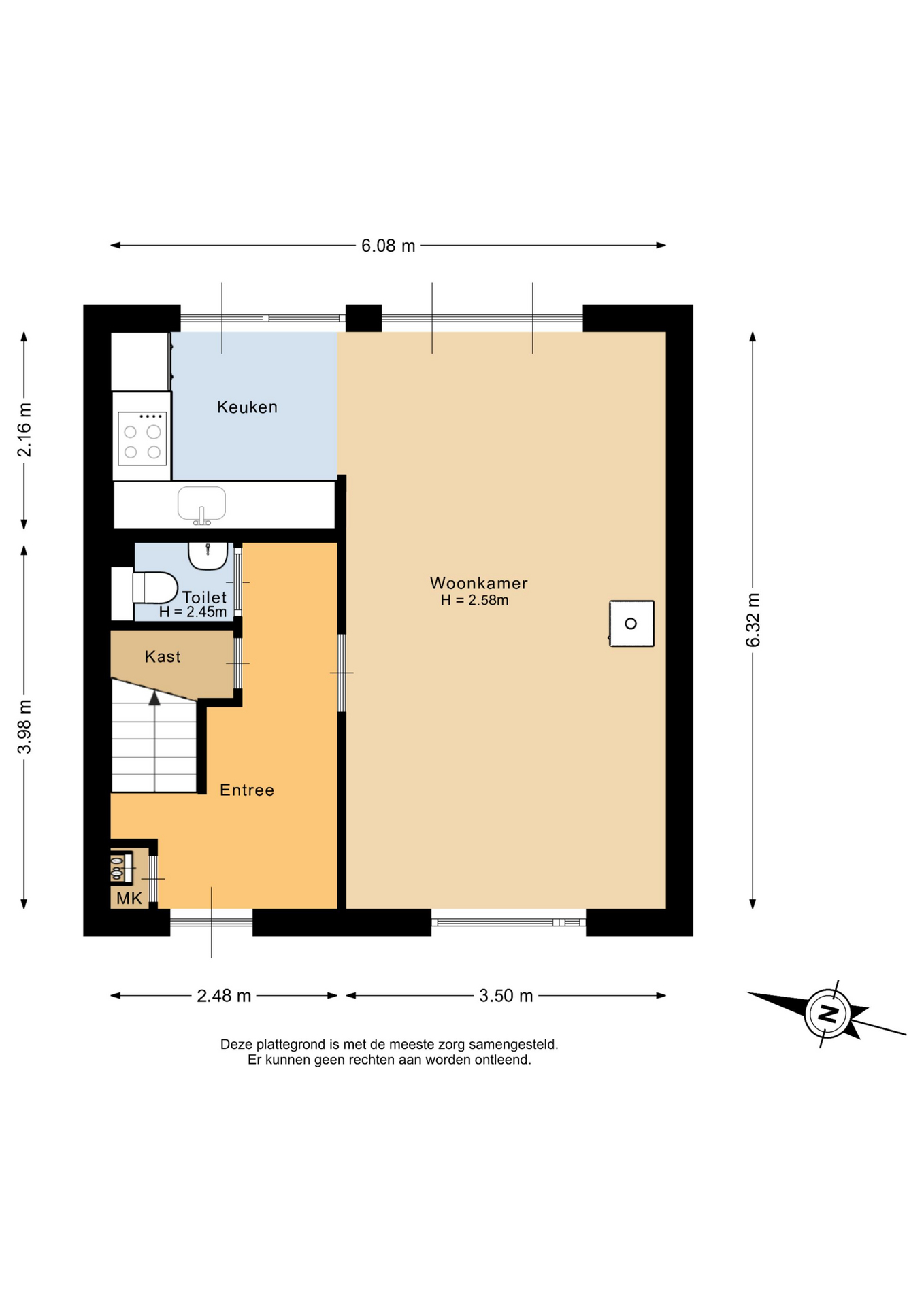 Entree, hal, meterkast, trapopgang, trapkast en toiletruimte met vrijdragend toilet en fontein. Woonkamer met sfeervolle pellet kachel en openslaande deuren naar de tuin. Open keuken met L-opstelling en diverse inbouwapparatuur zoals: Koelkast, elektrische oven, 5-zones inductie kookplaat, vaatwasmachine, close-in boiler 10L en afzuigkap.