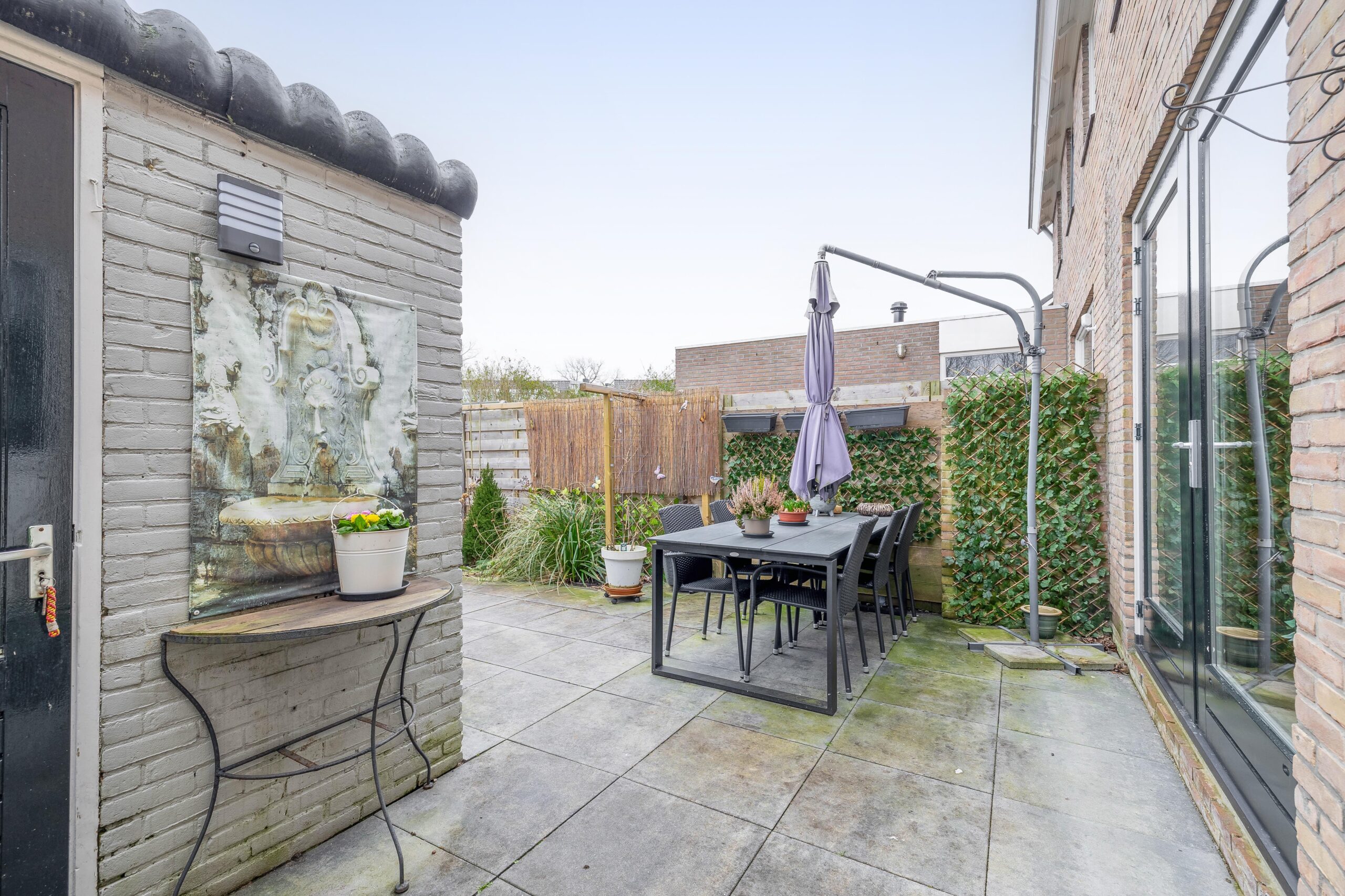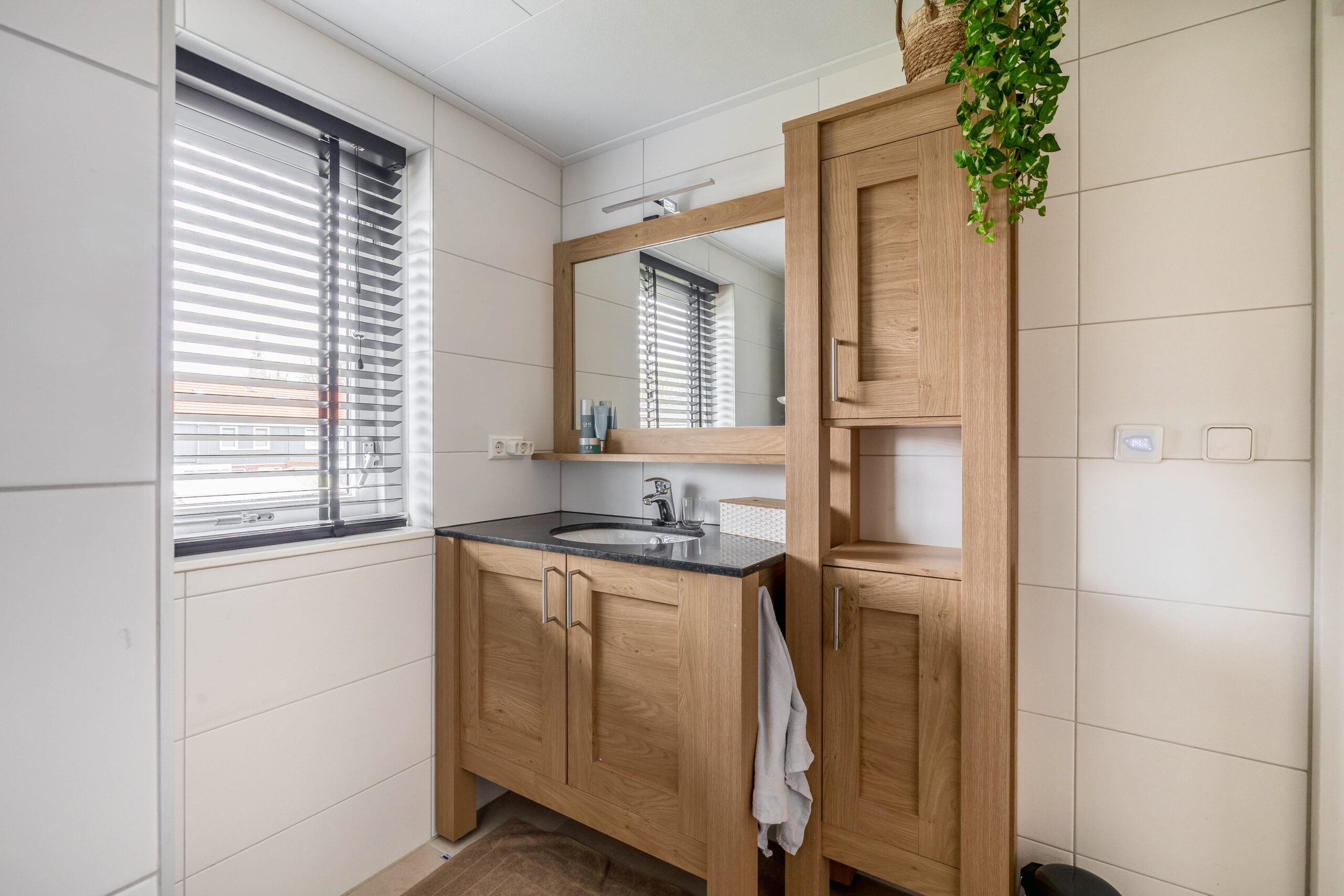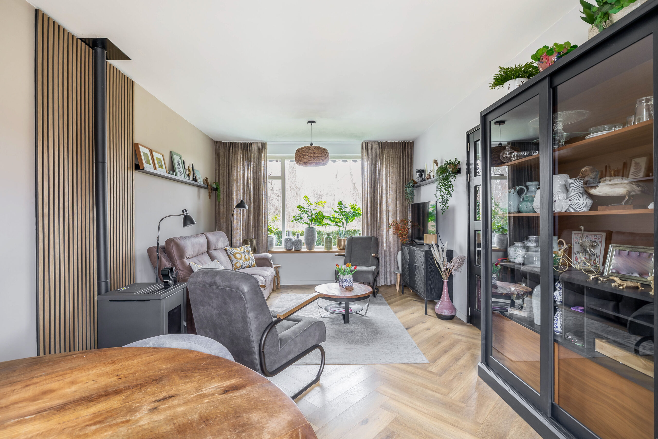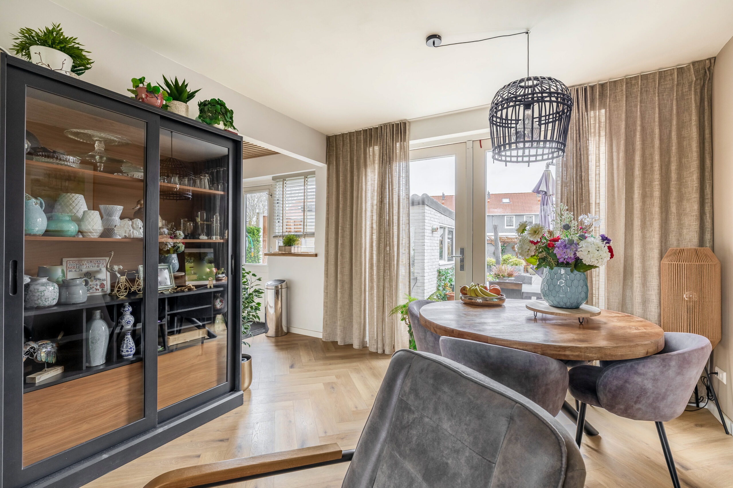 Binnen word je omarmd door een modern sfeervol interieur. De keuken is compact maar luxe afgewerkt. Door de openslaande tuindeuren stroomt het daglicht naar binnen en loop je zo je strak aangelegde achtertuin in.