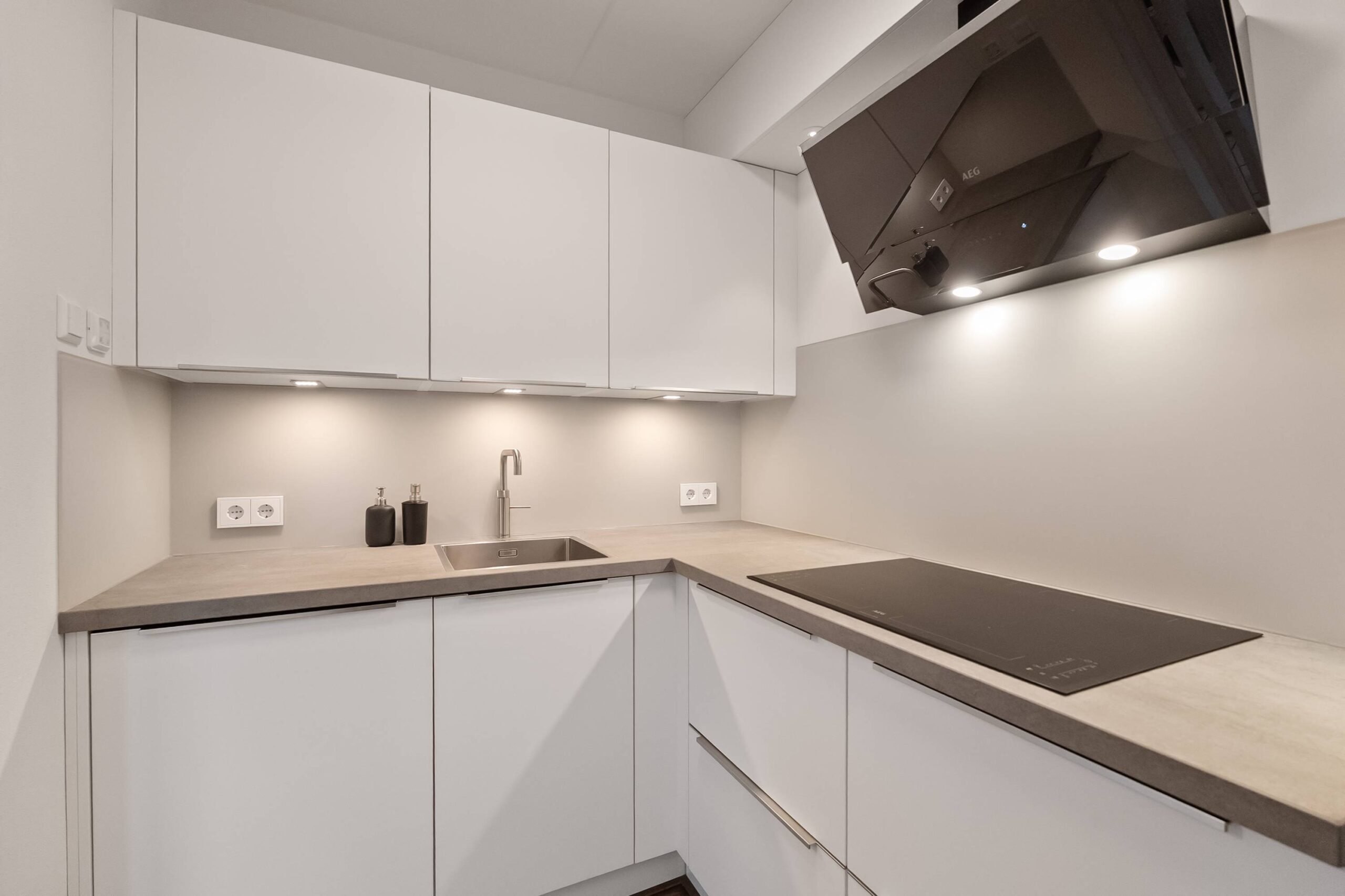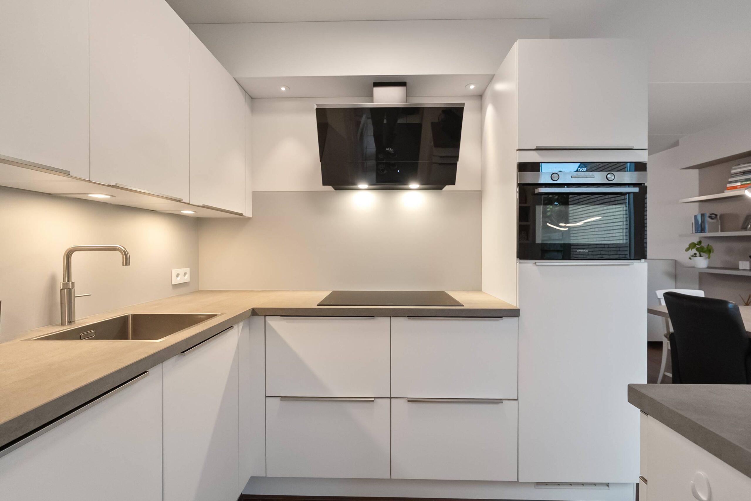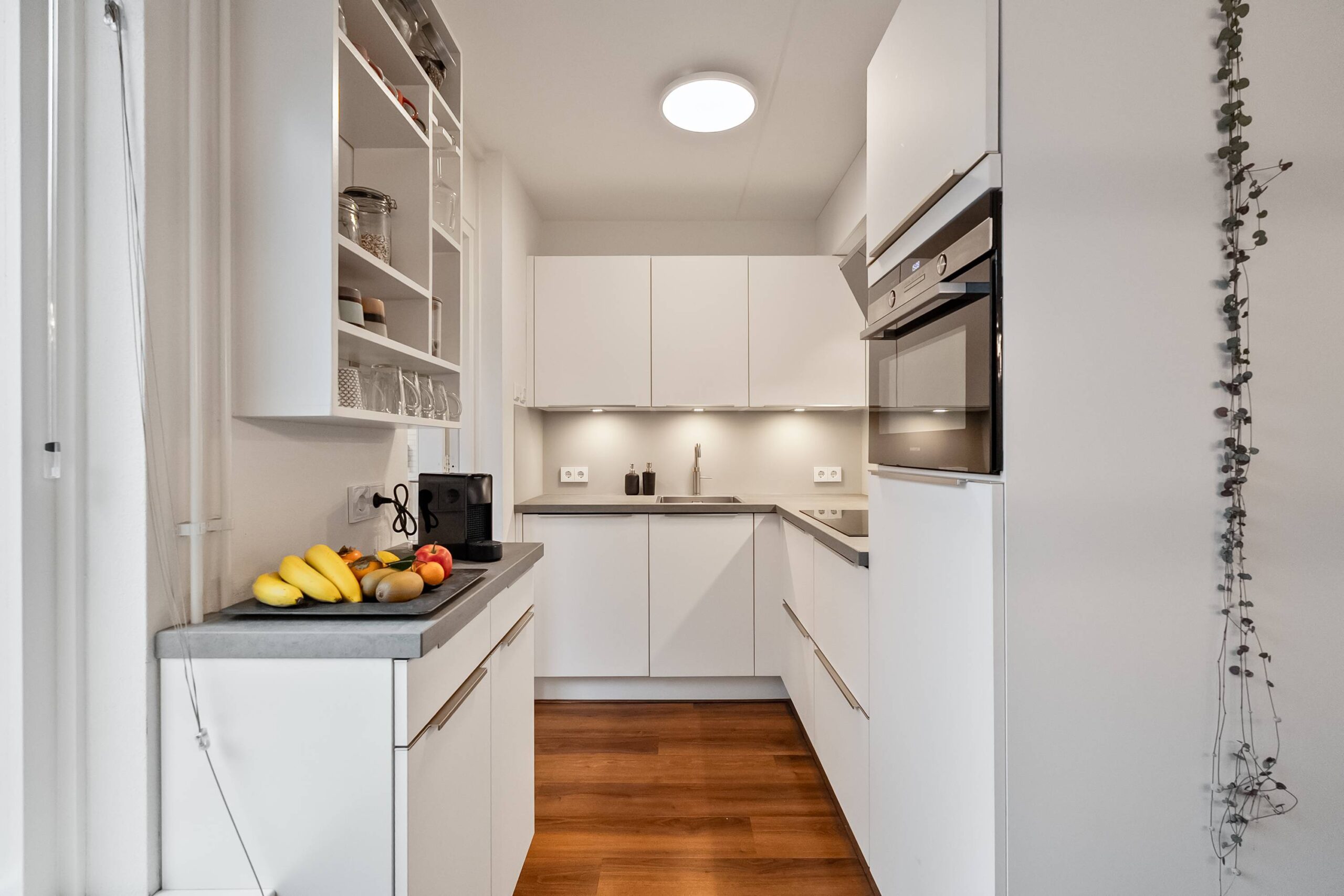 Zij entree, hal, moderne toiletruimte met vrijdragend toilet en fontein. Woonkamer, luxe open keuken met diverse inbouwapparatuur zoals: koelkast, combimagnetron, 4 zones inductie kookplaat, vaatwasmachine en Quooker. Bijkeuken met wasmachine- en droger opstelling.