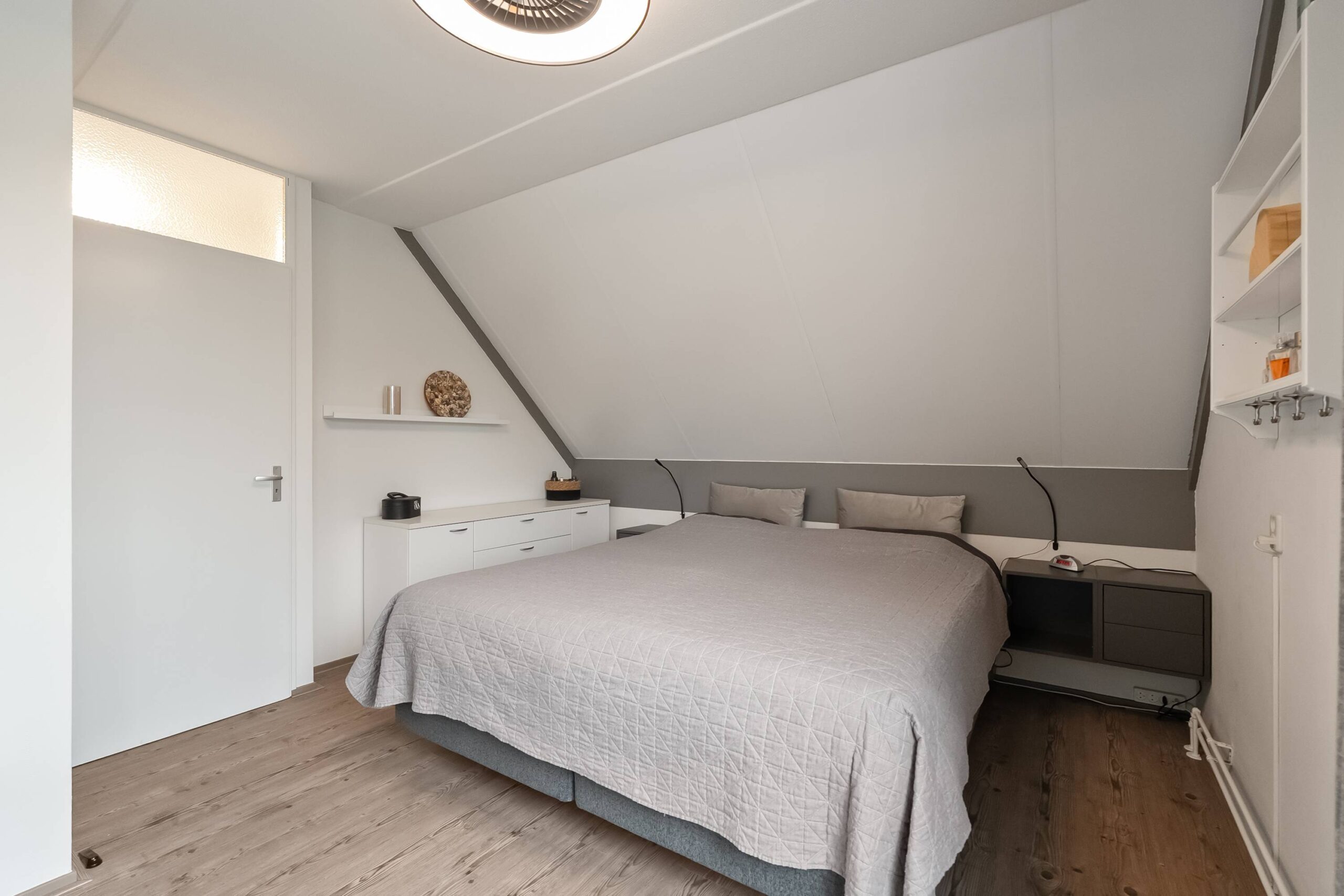 Voorzolder met CV- opstelling, slaapkamer met dakkapel en bergruimte achter knieschot.