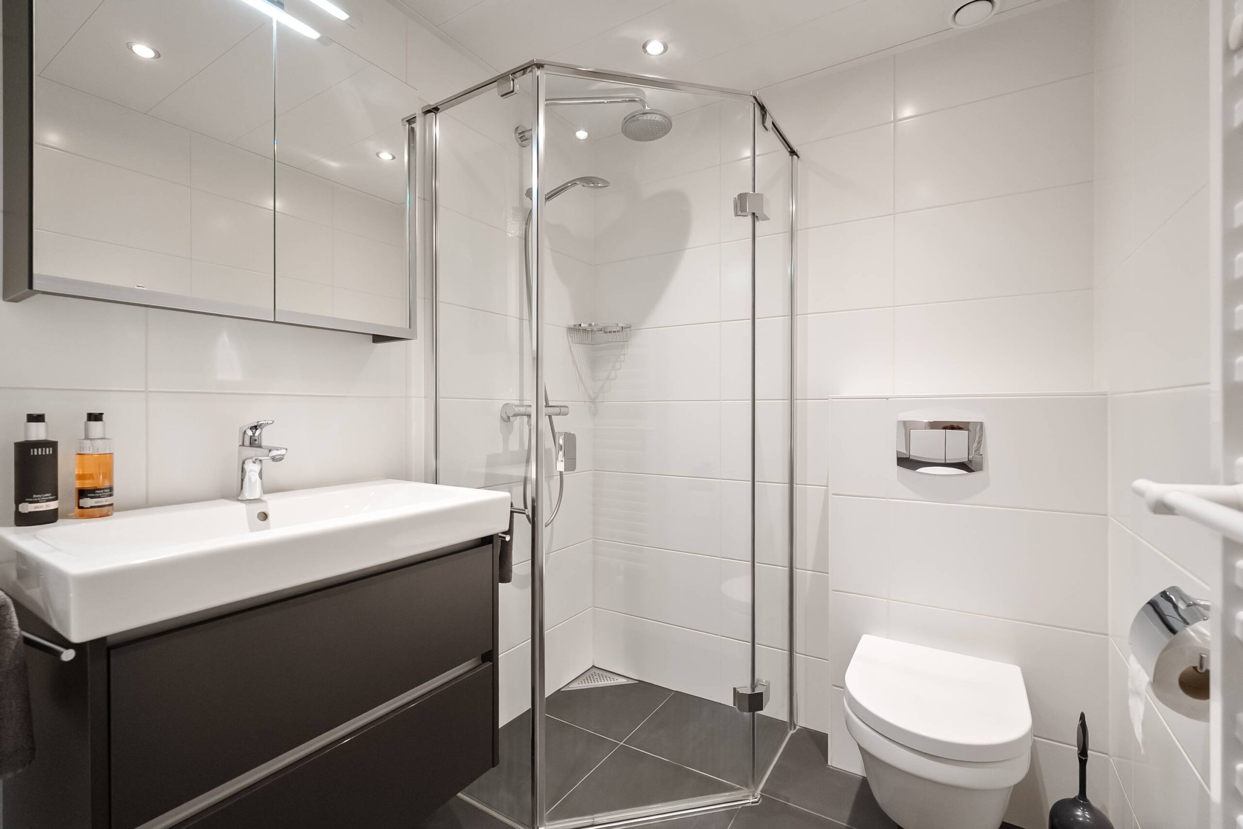 Overloop, 3 slaapkamers waarvan 1 met toegang tot het balkon. Badkamer met inloopdouche, vrijdragend toilet, wastafelmeubel en designradiator.